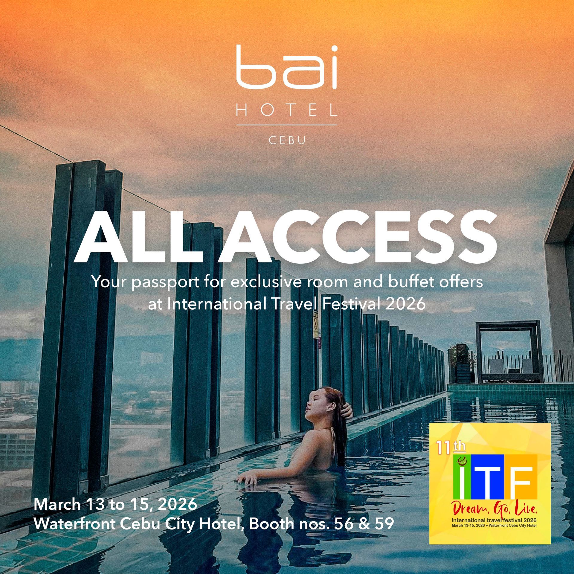 bai Hotel Cebu is bringing unbeatable deals to the 11th International Travel Festival 2026! Visit us from March 13–15, 2026 at Booth 56 and 59, Waterfront Cebu City Hotel, and discover offers you won't find anywhere else.