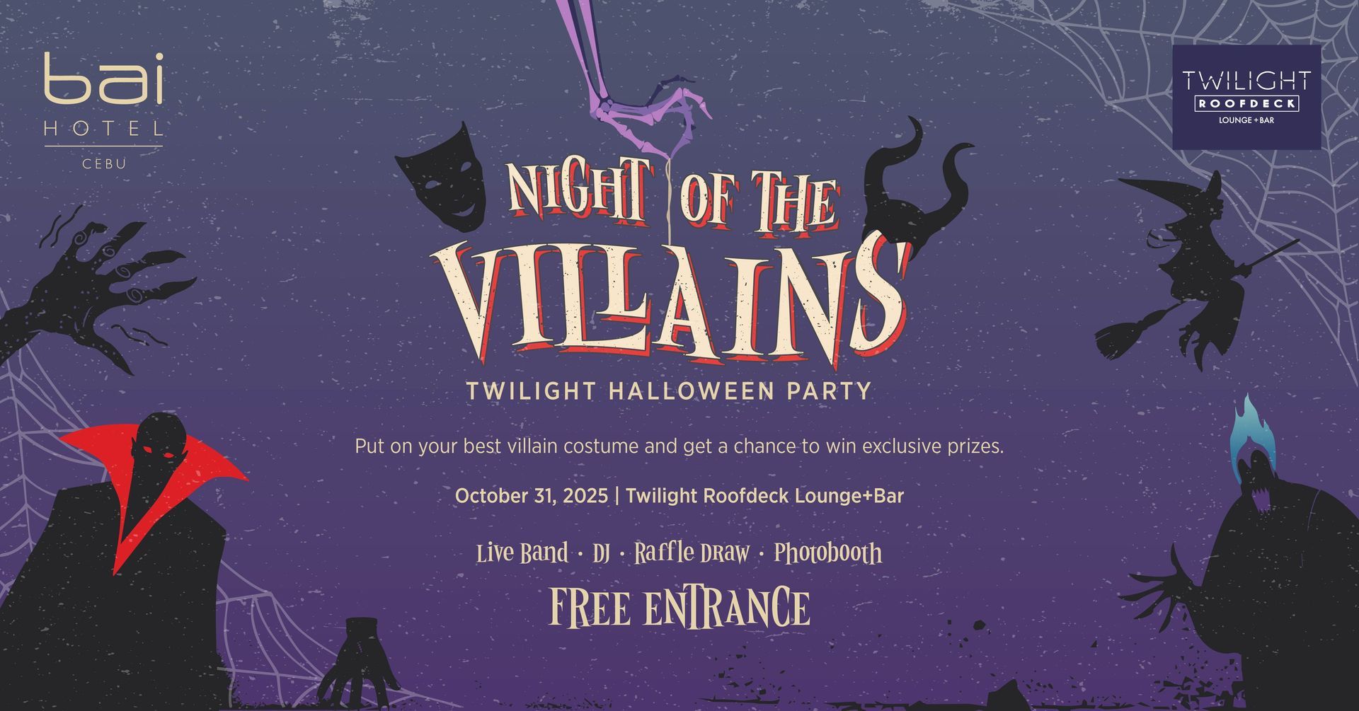 This Halloween, bai Hotel Cebu invites guests to a wickedly delightful celebration at Night of the Villains. Get ready for an unforgettable evening of mischief, music, and magic!