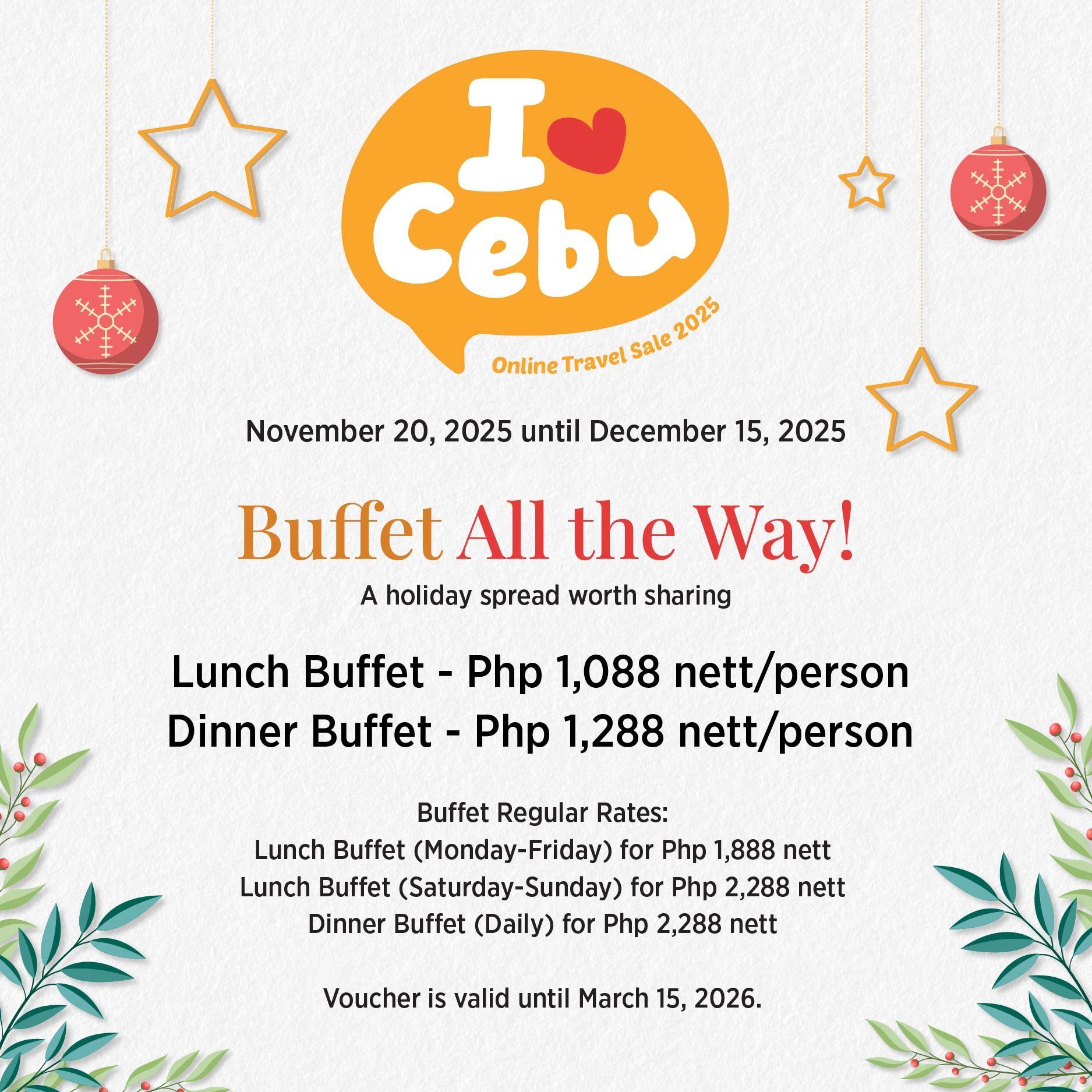 I Love Cebu Holiday Sale is a great opportunity to treat yourself to a well-deserved staycation and enjoy the famed CAFE bai buffet spread. These limited-time offers are the perfect way to celebrate the holidays and beyond.