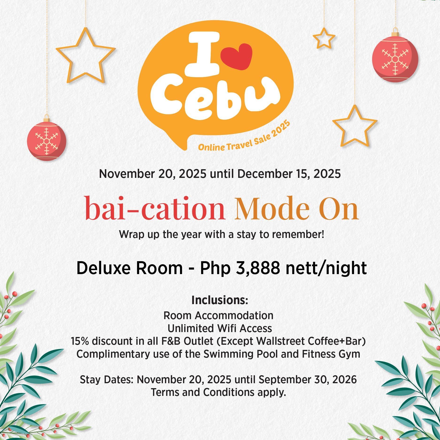 bai Hotel Cebu is excited to be part of the I Love Cebu Holiday Sale 2025. Score exclusive discounts on buffet and room accommodations, inviting both locals and tourists to treat themselves to an affordable, signature hospitality experience.